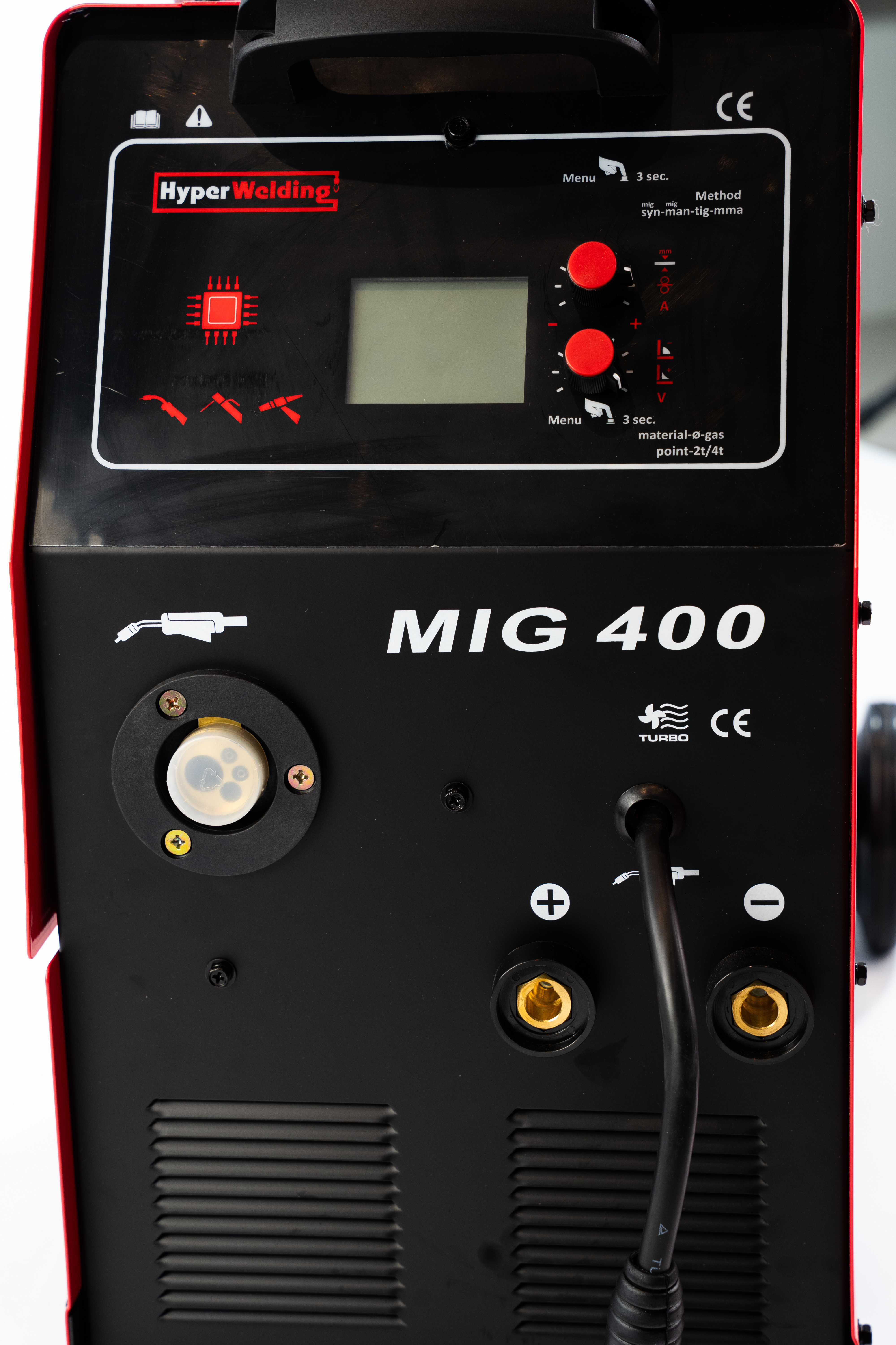 - Visualisatie op LCD-scherm van spanning, stroom, lassnelheid